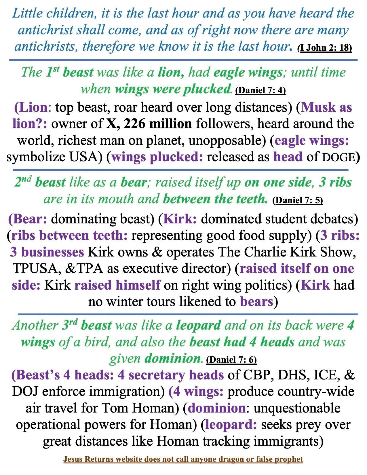 New Home Page Oct1 4 Beasts, & Antichrist Edited Dates, & Numbers! Jesus Returns 2025